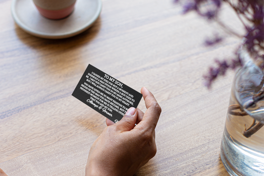Sentimental Engraved Aluminum Wallet Insert Card | Proudest Moment | To Son