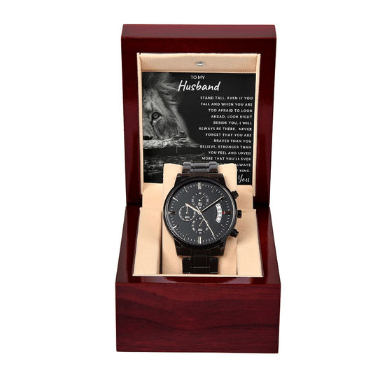 Gift For Husband | Black Chronograph Watch - Lion From Wife