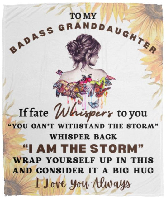 Gift For Badass Granddaughter | I Am The Storm Sunflower Throw Blanket 50x60