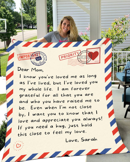 Gift For Mom | Personalized Mom Appreciation Letter Postcard Throw Blanket 50x60