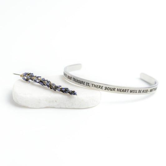 For Where Your Treasure Is, There Your Heart Will Be Also - Matthew 6:21 Cuff Bracelet