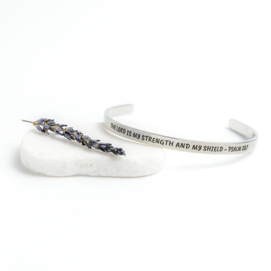 The Lord Is My Strength And My Shield - Psalm 28:7 Cuff Bracelet