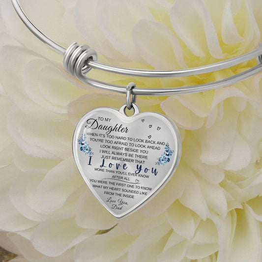 Gift For Daughter | Right Beside You Heart Bangle Bracelet From Dad