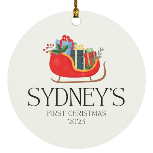 Sled Personalized First Christmas Circle Ornament
