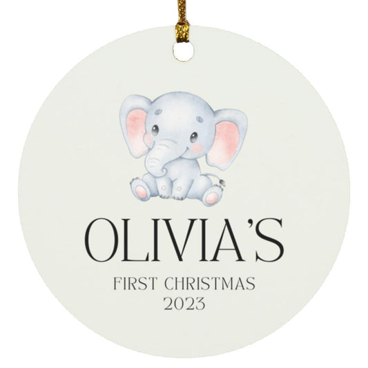 Elephant First Christmas Personalized Circle Ornament