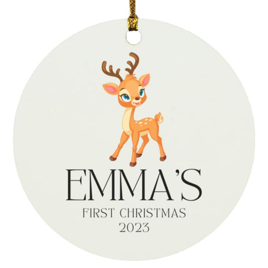 Baby Deer Personalized First Christmas Circle Ornament