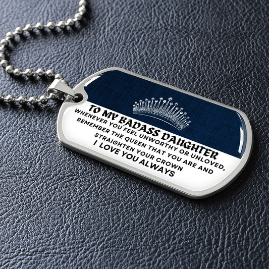 Gift For Badass Daughter | Blue Crown Dog Tag Necklace