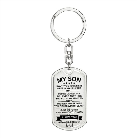 Gift For Son | Win Or Learn Dog Tag Keychain From Dad