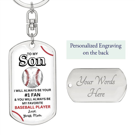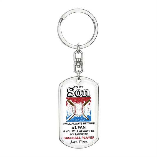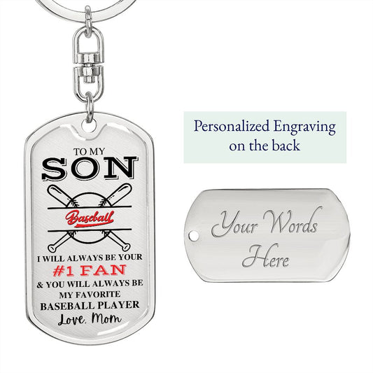 Gift For Son | #1 Baseball Fan Dog Tag Keychain From Mom