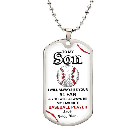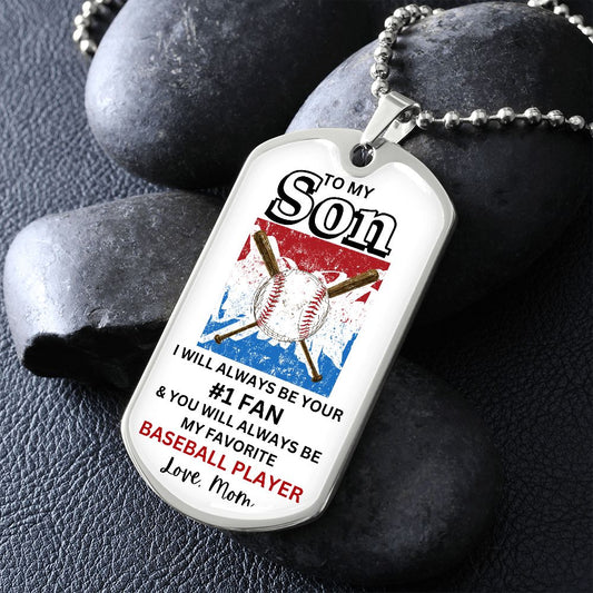 Gift For Son | #1 Baseball Fan Dog Tag Necklace From Mom