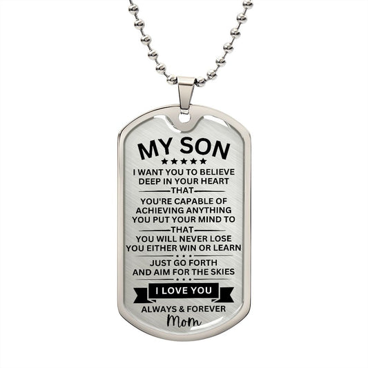 Gift For Son | Win Or Learn Dog Tag Necklace From Mom