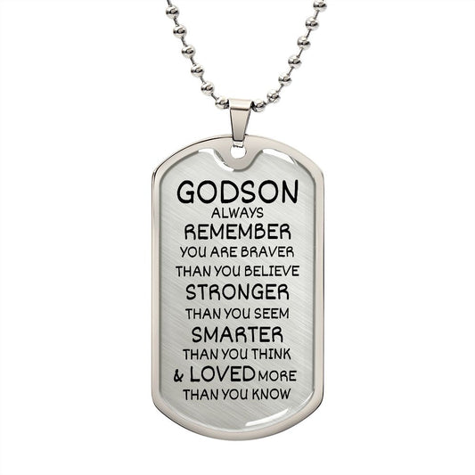 Gift For Godson | Braver Stronger Smarter Loved Dog Tag Necklace