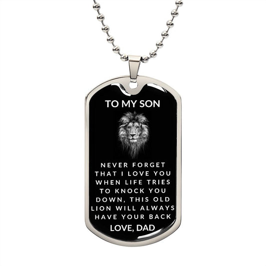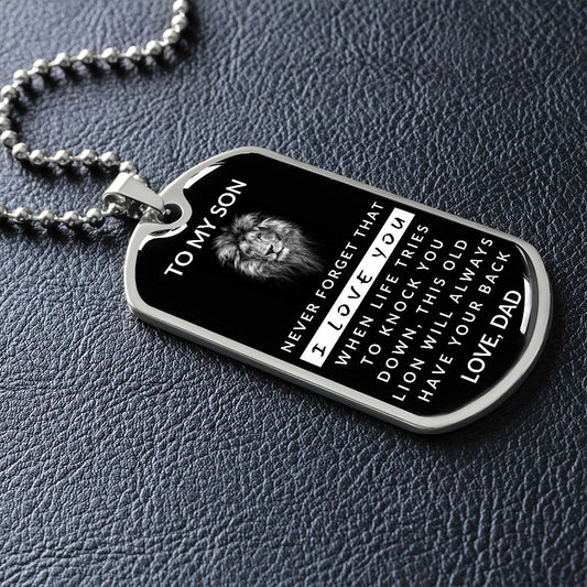 Gift For Son | Old Lion Dog Tag Necklace From Dad