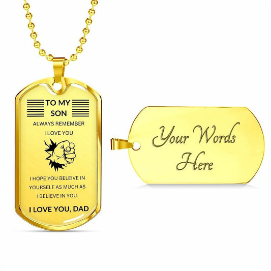 Gift For Son | Believe Dog Tag Necklace - Fist From Dad