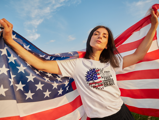 "Home of the Free Because of the Brave" American Flag Sunflower T-Shirt