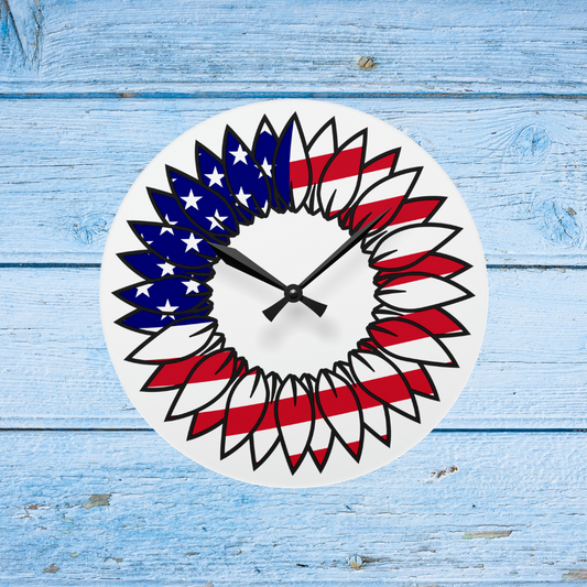 American Flag Sunflower Acrylic Wall Clock