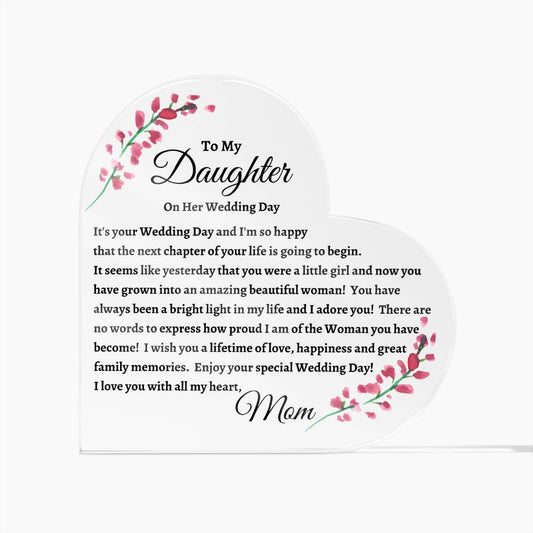 Gift For Daughter | Wedding Day Heart Acrylic Plaque From Mom
