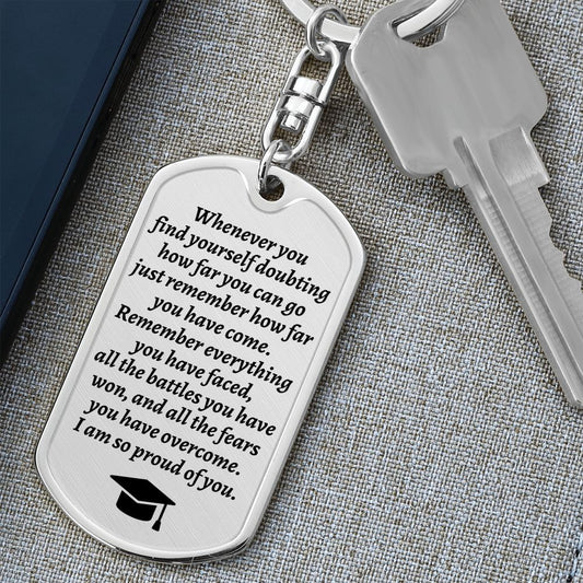 Gift For Graduate | Graduation Dog Tag Keychain - So Proud