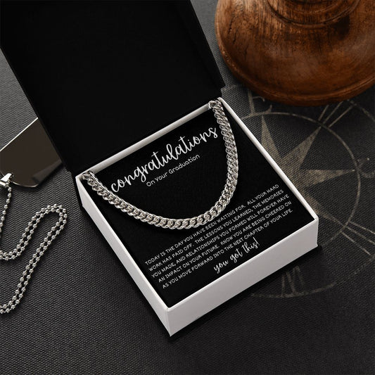 Gift For Graduate | Graduation Cuban Link Chain Necklace - Congratulations