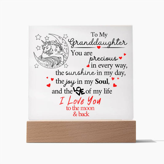 Gift For Granddaughter | Unicorn - To The Moon & Back Square Acrylic Plaque | From Grandparent