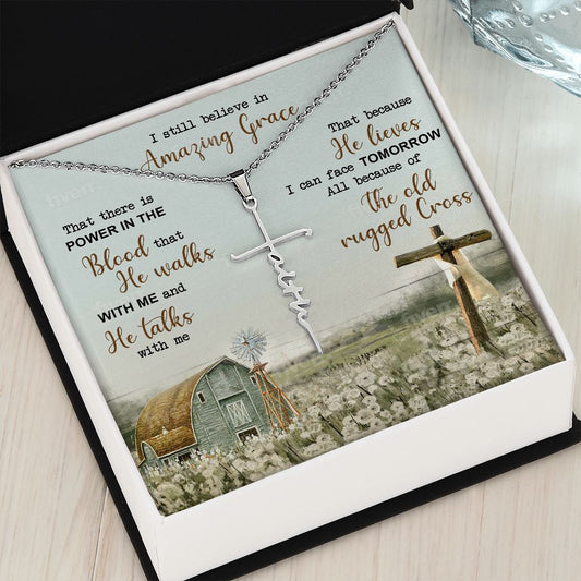 Gift For Her | Faith Cross Necklace - Amazing Grace