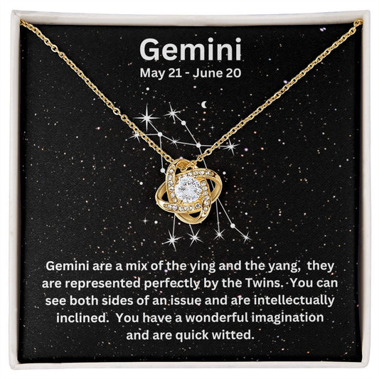 Gift For Her | Gemini Zodiac Sign Love Knot Necklace