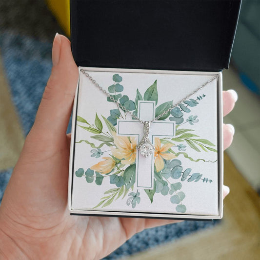 Gift For Her | Teal Floral Cross Alluring Beauty Necklace