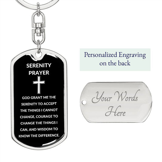 Gift For Him Or Her | Black Serenity Prayer Dog Tag Keychain