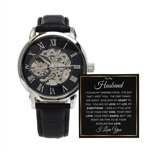 Gift For Husband | Men's Openwork Watch - Missing Piece Black From Wife