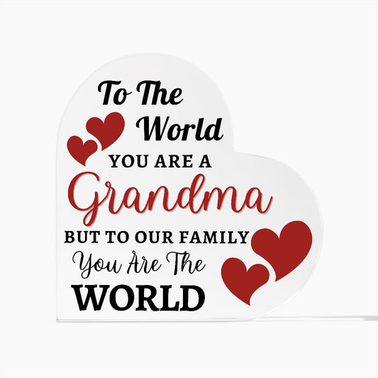 Gift For Grandma | You Are The World Printed Heart Shaped Acrylic Plaque
