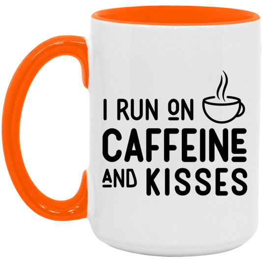 Gift For Mom | I Run On Caffeine And Kisses Mug 15 oz. Coffee & Tea Lover Gift
