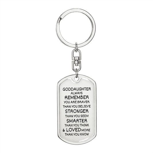 Gift For Goddaughter | Braver Stronger Smarter Loved Dog Tag Keychain
