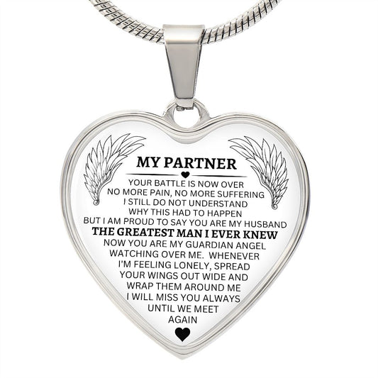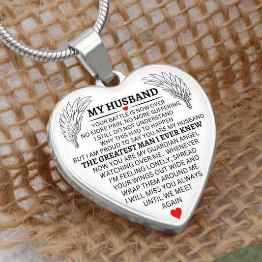 Guardian Angel Heart Necklace | In Memory of Your Husband, Sorry For Your Loss Gift