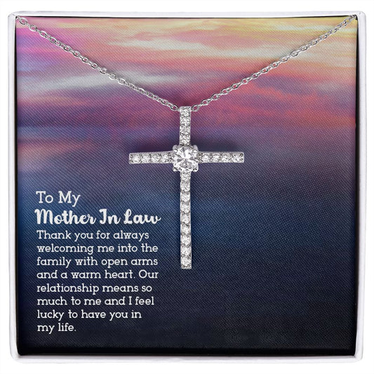 Gift For Mother-In-Law | CZ Cross Necklace - Open Arms
