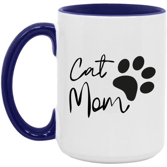 Gift For Cat Mom | Cat Mom Accent Colored Mug 15 oz.