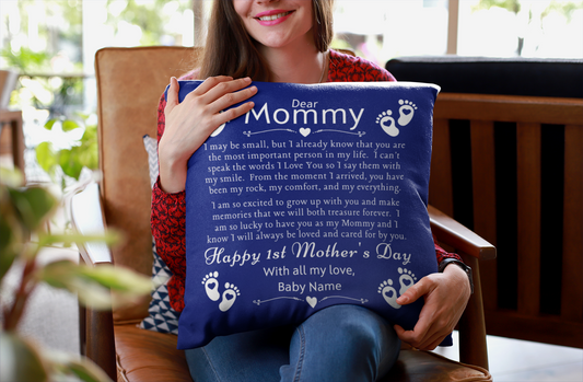 Dear Mommy Personalized Baby Name Large Square Pillow 18x18 - Blue