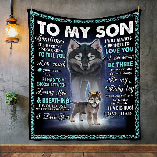 Gift For Son | Wolf & Pup Blanket 50x60 From Dad