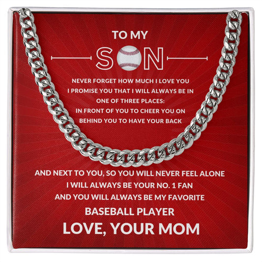 Gift For Son | Cuban Link Chain - Baseball Red From Mom