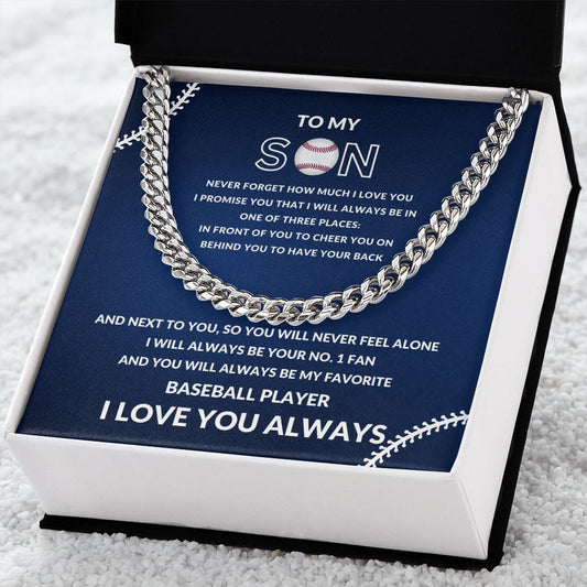 Gift For Son | Cuban Link Chain - Baseball Blue From Mom