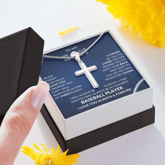 Gift For Son | Stainless Steel Cross - Baseball Player
