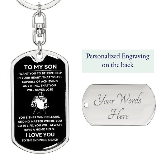 Gift For Son | Win Or Learn Dog Tag Keychain From Mom
