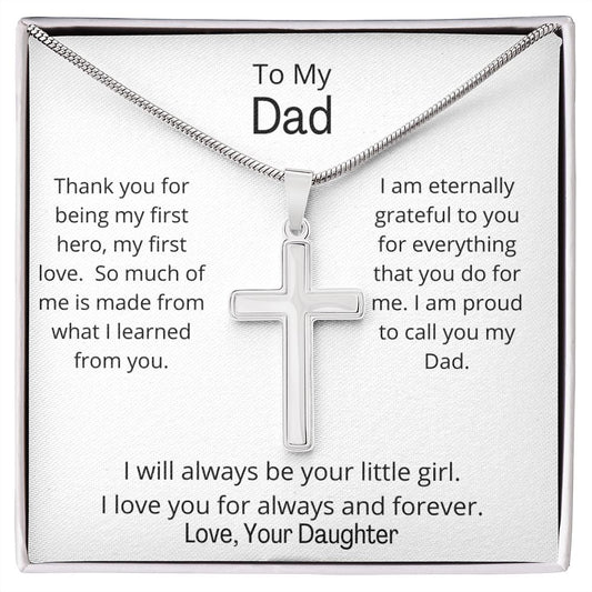 Gift For Dad | My Hero Stainless Steel Cross Necklace From Daughter