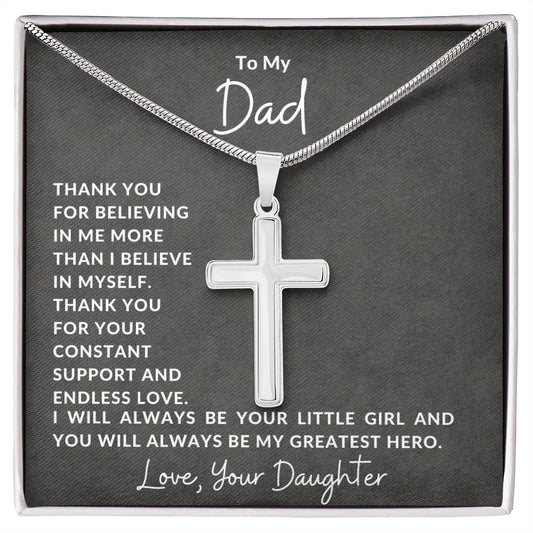 Gift For Dad | Believe In Me Stainless Steel Cross Necklace From Daughter