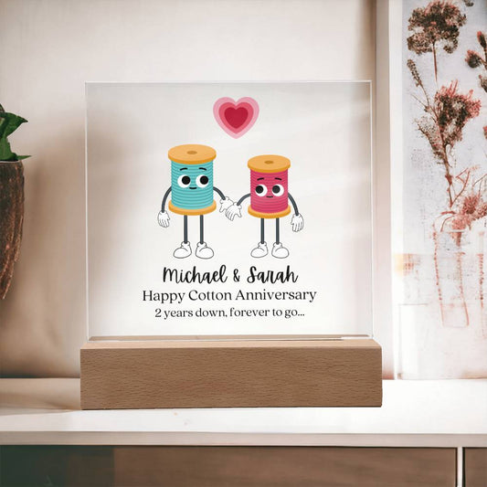 Gift For Soulmate | Happy Cotton Anniversary Square Acrylic Plaque - 2 Year Anniversary