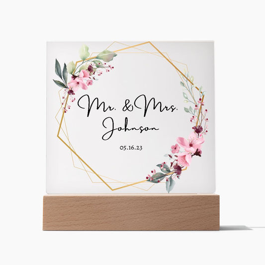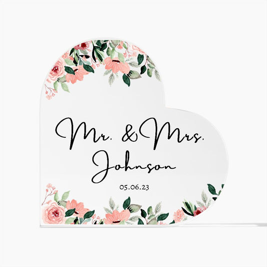 Mr. & Mrs. Wedding Date Heart Shaped Acrylic Plaque | Cake Topper, Wedding Gift
