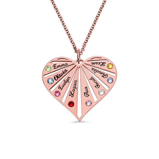 Personalized Split Heart Birthstones Necklace | Stainless Steel | 1-8 Names