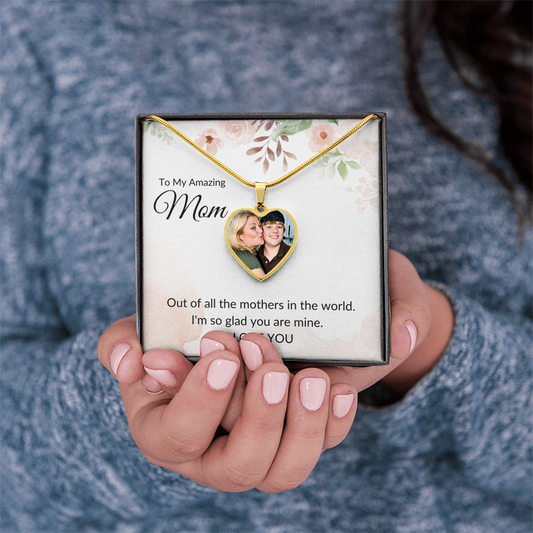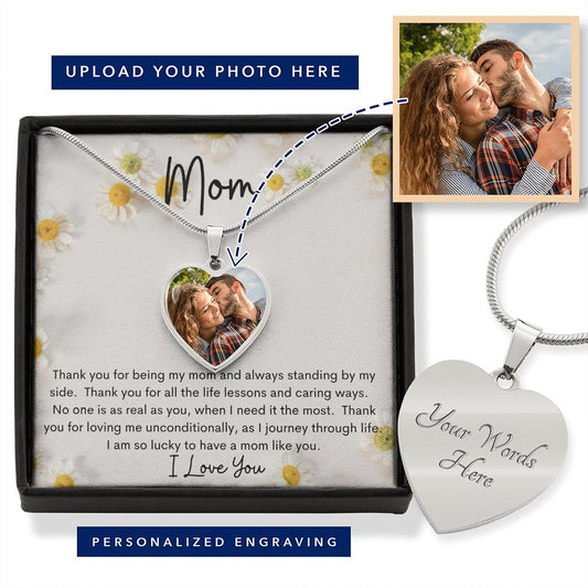 Gift For Mom | Mom Custom Photo Heart Necklace From Daughter or Son